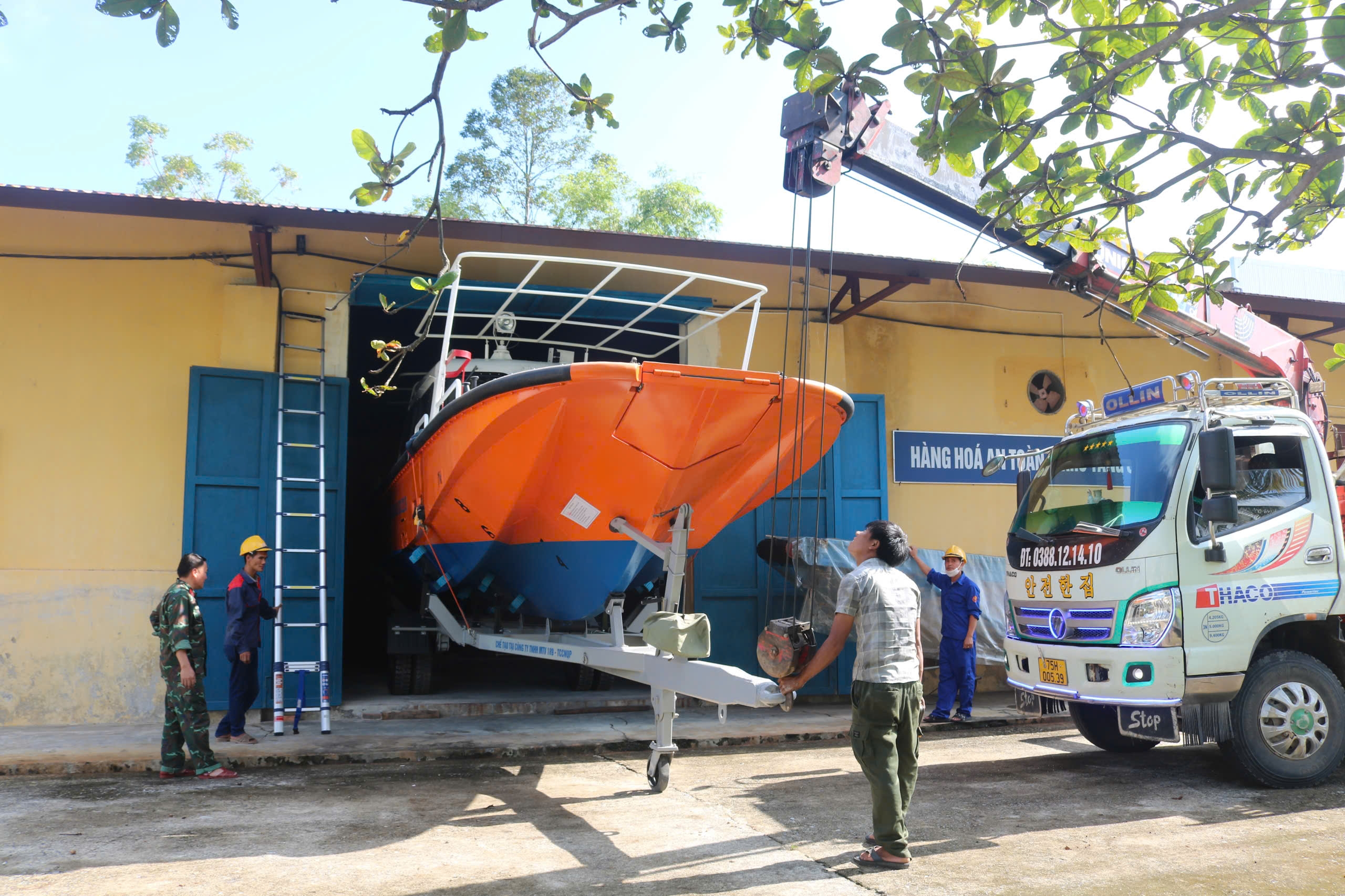 | Chi cục Dự trữ Nhà nước khu vực IX phối hợp với Ban Chỉ huy phòng thủ dân sự thành phố Huế tổ chức giao, nhận 02 bộ xuồng cao tốc loại DT3 tại Điểm kho ĐK7.KV9. |